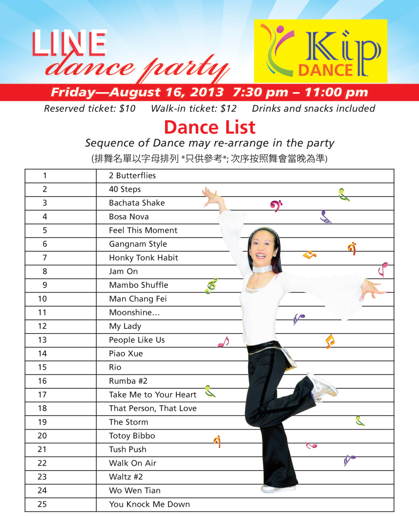 Dance List—August 16 Line Dance Party Share this: Click to share on X (Opens in new window) X Click to share on Facebook (Opens in new window) Facebook Like Loading...